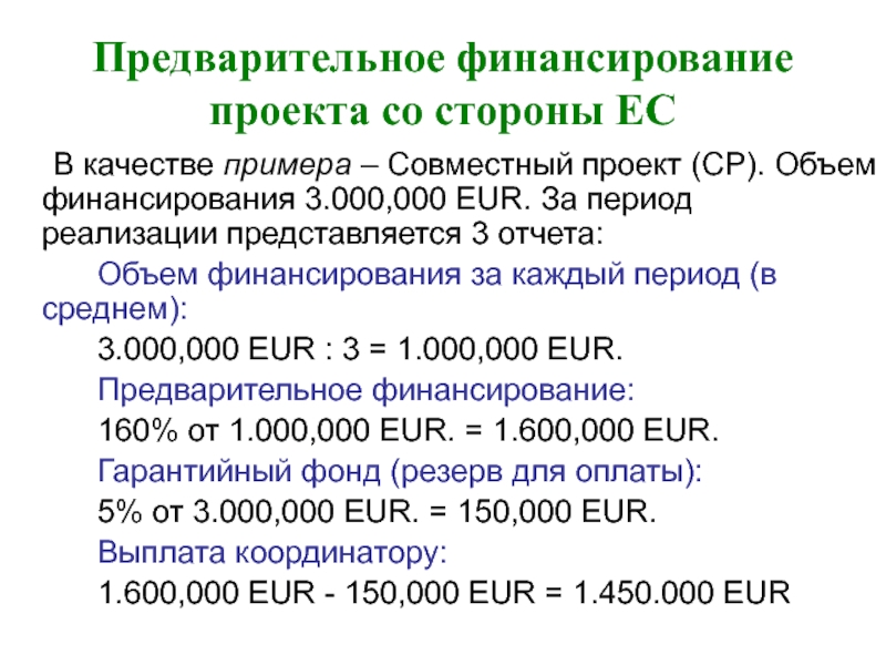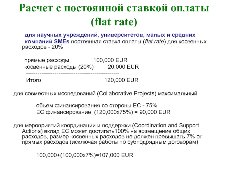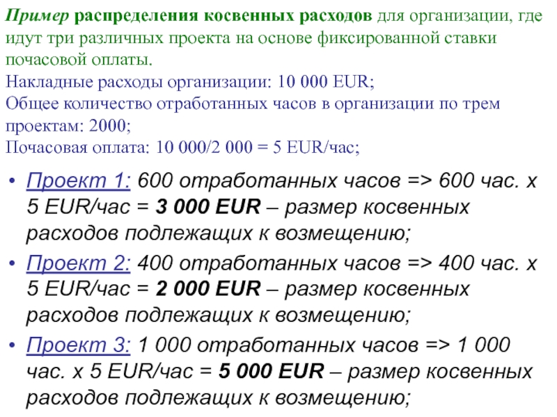 Проект 3: 1 000 отработанных часов => 1 000 час. х 5 EUR/час = 5 000 ЕUR – размер косвенных расходов подлежащих к возмещению;