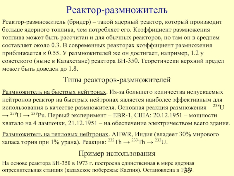 k>1.01 – Взрыв (для реактора на тепловых нейтронах энерговыделение будет расти в 20000 раз в секунду).