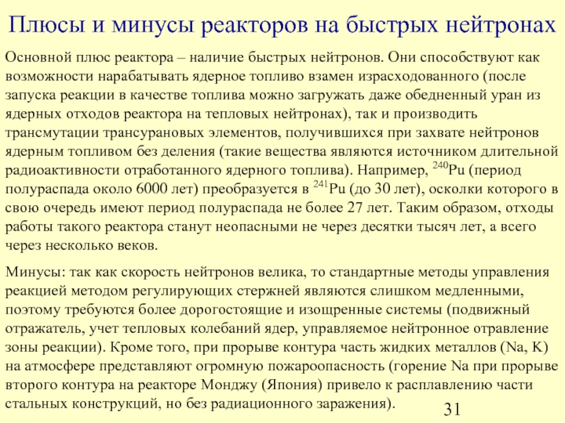 Облученное топливо опасно, требует сложных и дорогих мер по переработке и хранению;