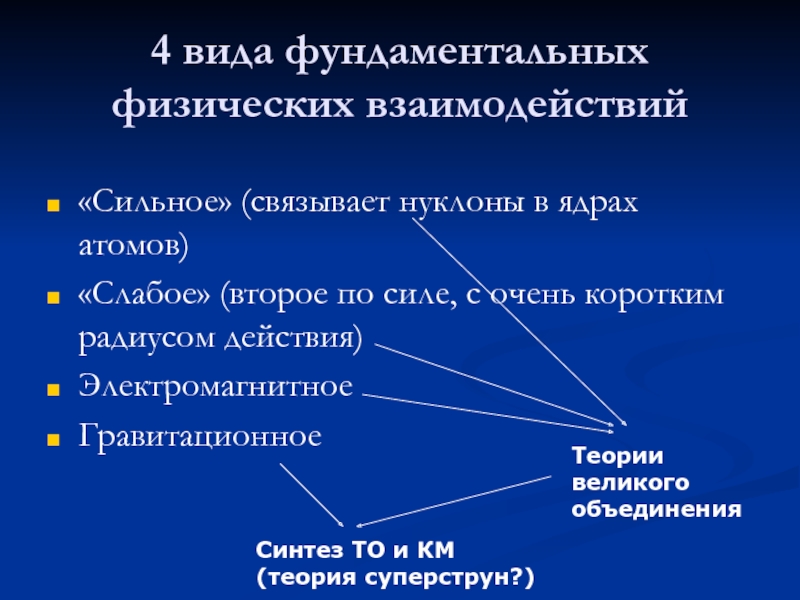 «Сильное» (связывает нуклоны в ядрах атомов)