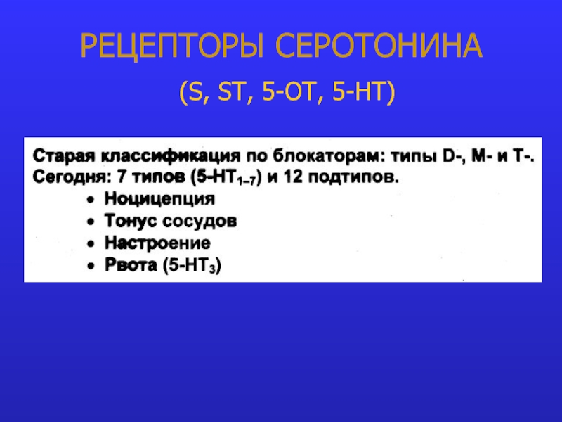 Слайд 27РЕЦЕПТОРЫ СЕРОТОНИНА