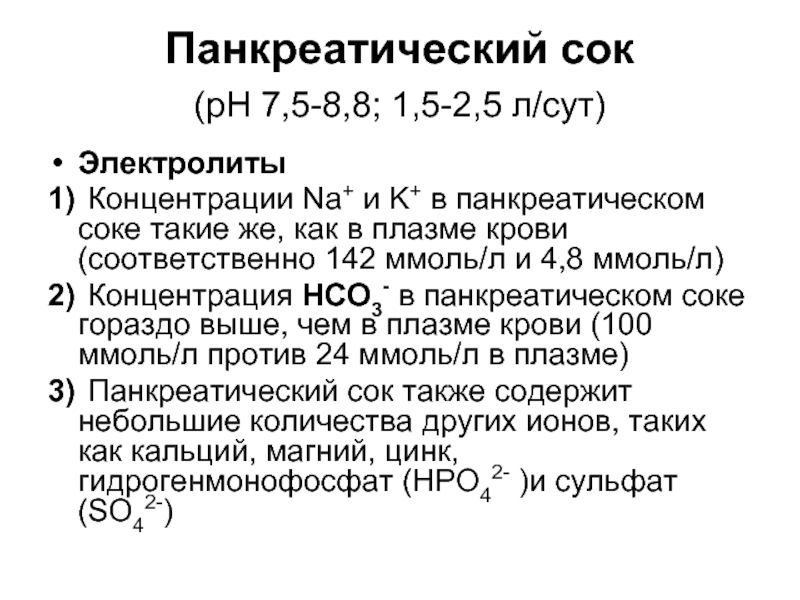 Электролиты. Электролитный состав желчи такой же, как электролитный состав панкреатического сока и плазмы крови.