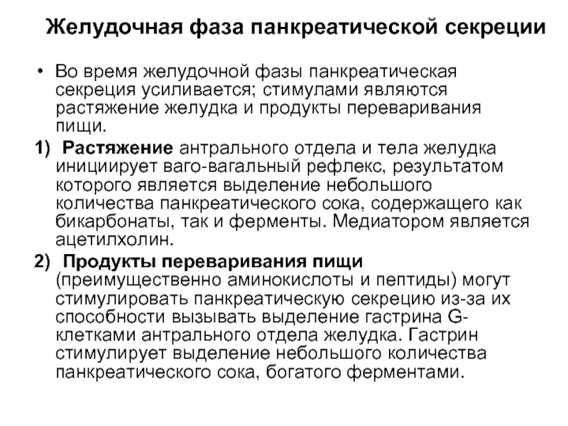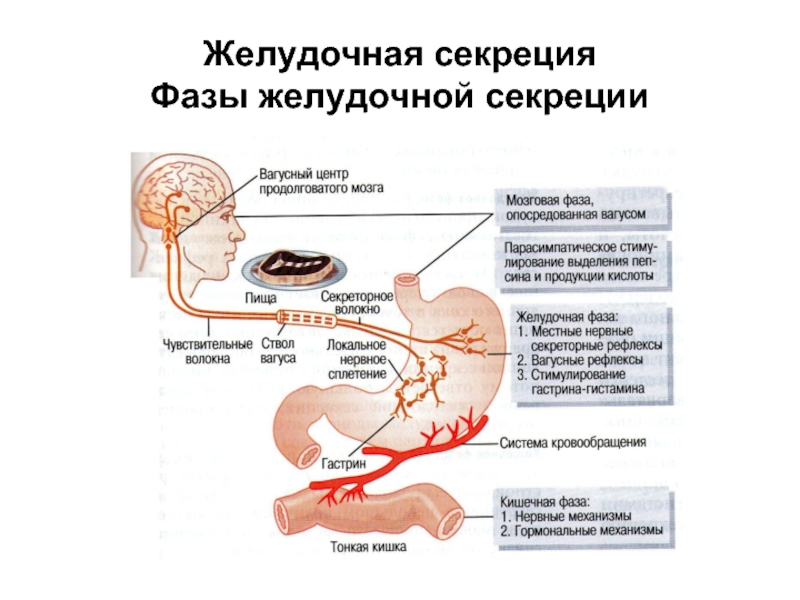 Слайд 4Желудочная фаза секреции начинается при попадании пищи в желудок.
