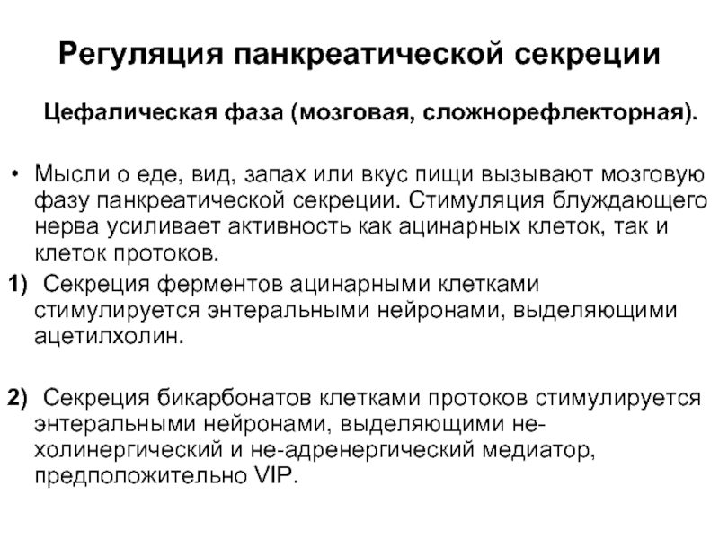 Слайд 3Цефалическая (мозговая, сложнорефлекторная) фаза желудочной секреции запускается мыслями о еде, а