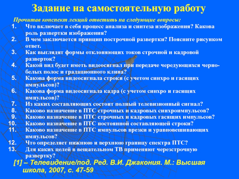 С помощью чересстрочной развертки удается при неизменных числе строк и частоте мельканий уменьшить вдвое верхнюю граничную частоту спектра сигнала изображения. В результате спектр сигнала для отечественного стандарта занимает полосу частот от fmin = 50 Гц до fmax = 6МГц