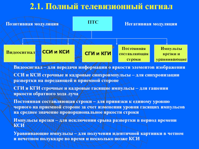 ССИ и КСИ строчные и кадровые синхроимпульсы – для синхронизации развертки на передающей и приемной стороне