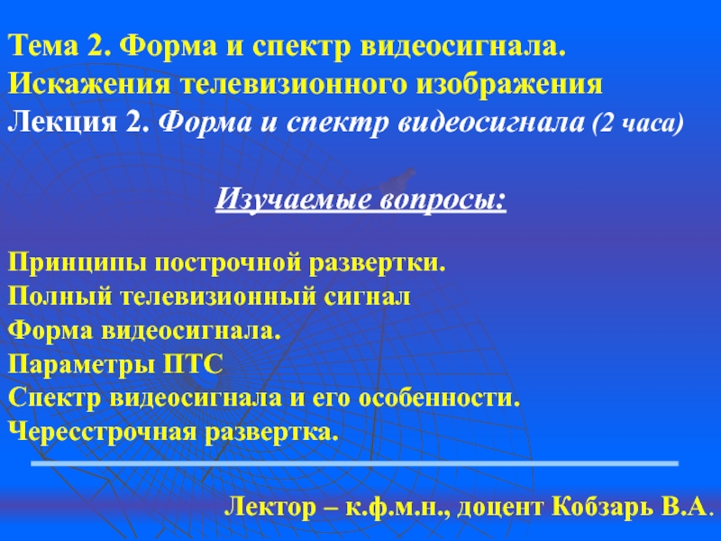 Лектор – к.ф.м.н., доцент Кобзарь В.А.