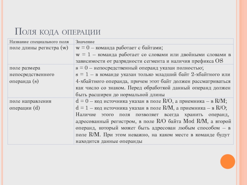 Смещение (0-4 байта). В командах дальних переходов хранится 2 поля – смещение и селектор сегмента