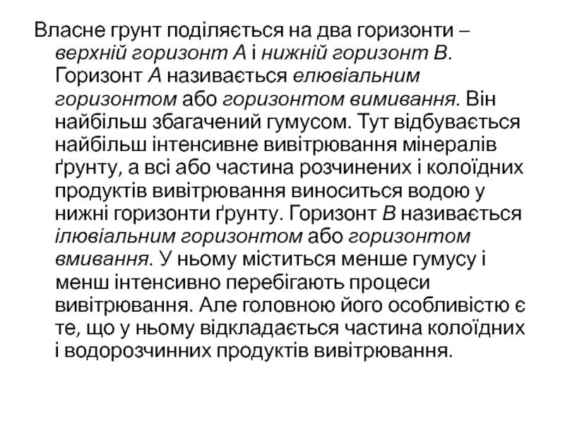 Слайд 7Власне грунт поділяється на два горизонти – верхній горизонт А і