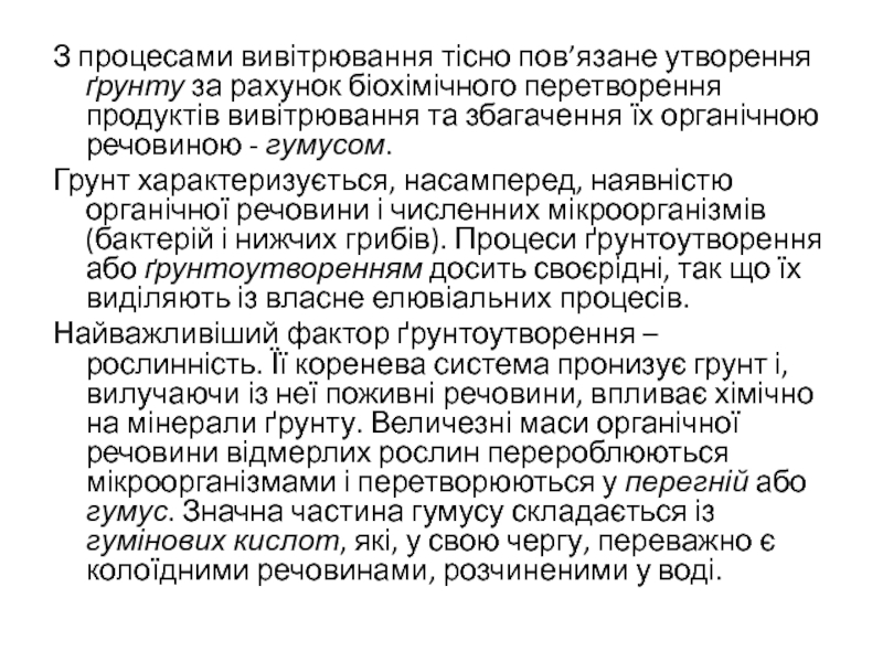 Слайд 6З процесами вивітрювання тісно пов’язане утворення ґрунту за рахунок біохімічного перетворення