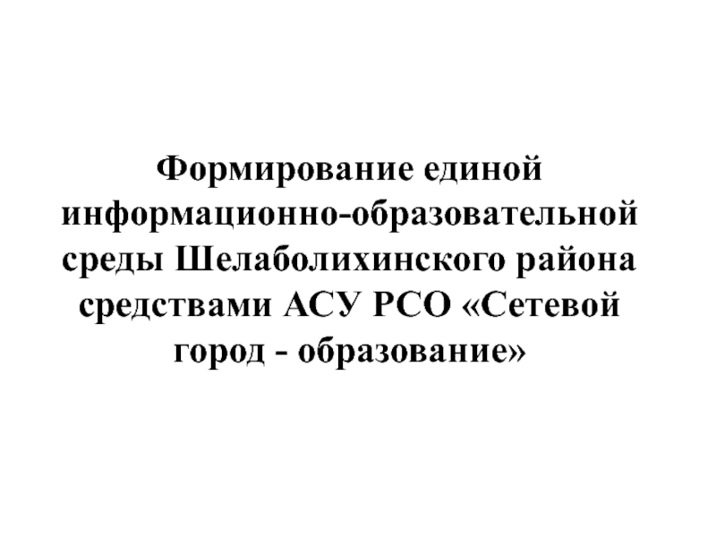 Слайд 1Формирование единой информационно-образовательной среды Шелаболихинского района средствами АСУ РСО «Сетевой город