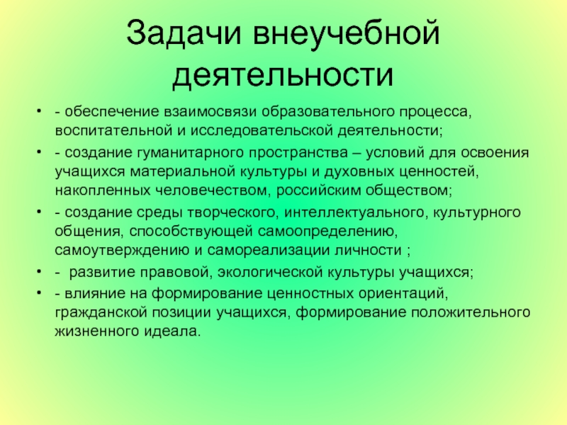 создание гуманитарного пространства – условий для освоения учащихся материальной культуры и духовных ценностей, накопленных человечеством, российским обществом;