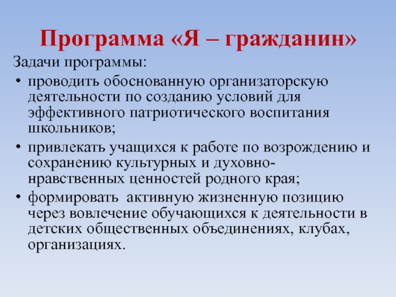 Воспитание гражданственности, патриотизма, уважения к правам,
