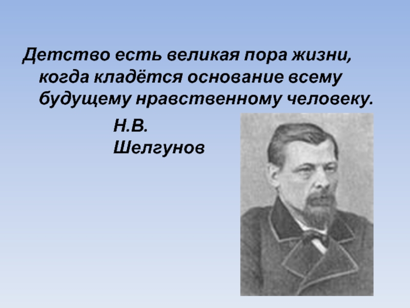 Детство есть великая пора жизни, когда кладётся основание всему будущему нравственному