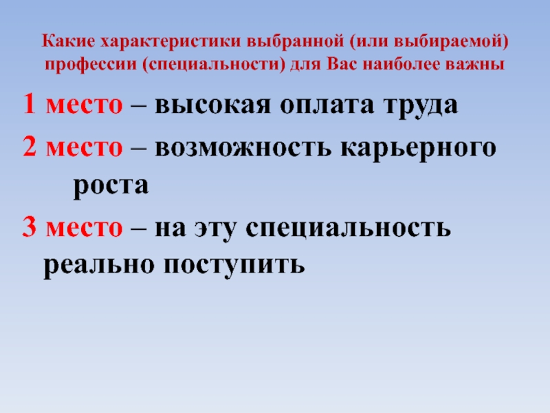Слайд 9Какие характеристики выбранной (или выбираемой) профессии (специальности) для Вас наиболее важны