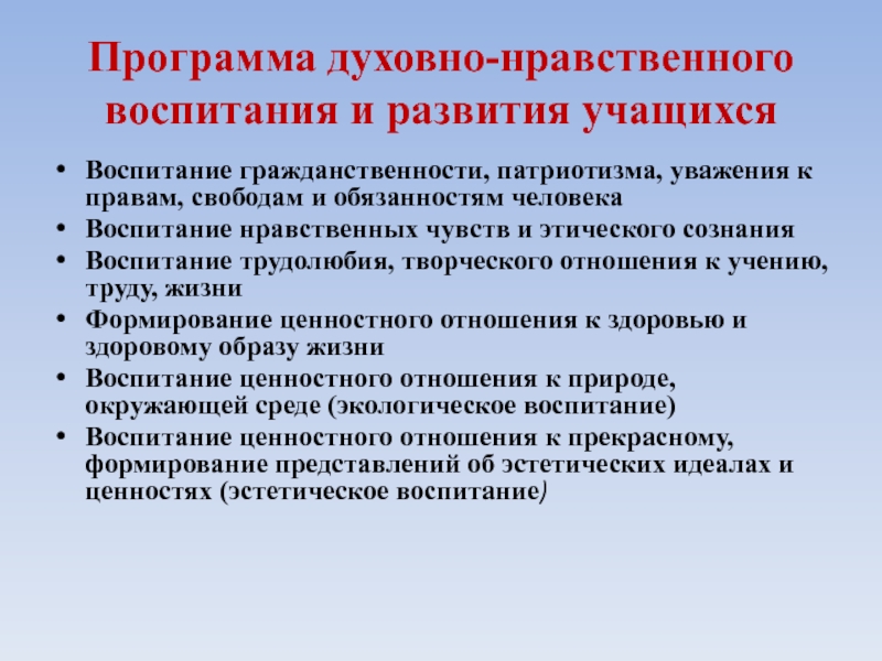 Слайд 12Программа духовно-нравственного воспитания и развития учащихся