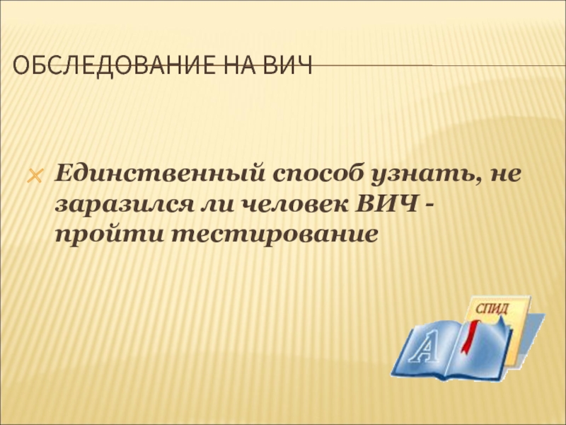 Слайд 57ОБСЛЕДОВАНИЕ НА ВИЧ