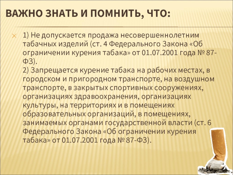 (ст. 4 Федерального Закона «Об ограничении курения табака» от 01.07.2001 года № 87-ФЗ).