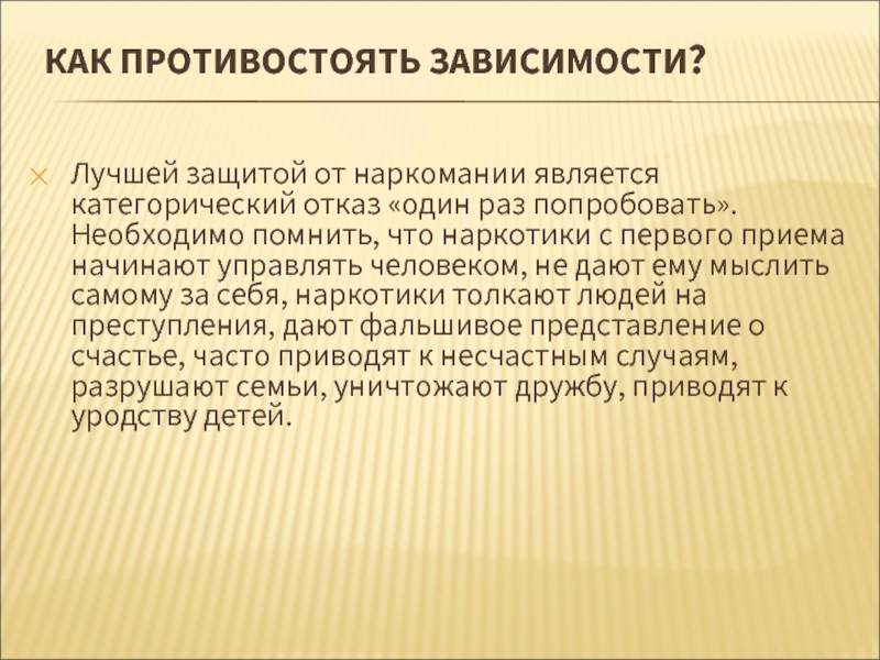 Слайд 13КАК ПРОТИВОСТОЯТЬ ЗАВИСИМОСТИ?