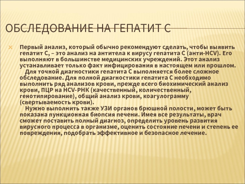 Слайд 66ОБСЛЕДОВАНИЕ НА ГЕПАТИТ С
