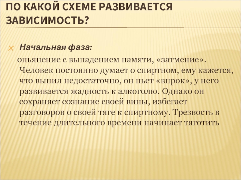 Слайд 18ПО КАКОЙ СХЕМЕ РАЗВИВАЕТСЯ ЗАВИСИМОСТЬ?