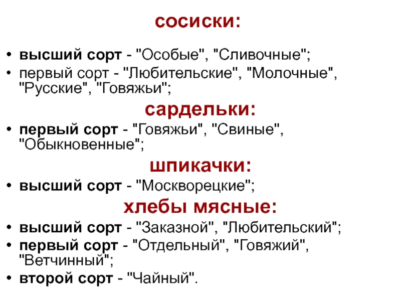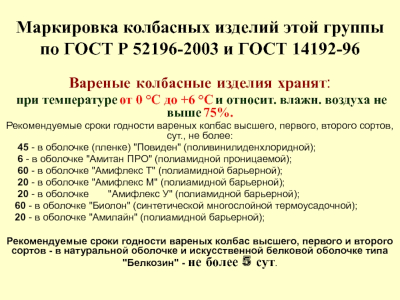 Рекомендуемые сроки годности вареных колбас высшего, первого, второго сортов, сут., не более: