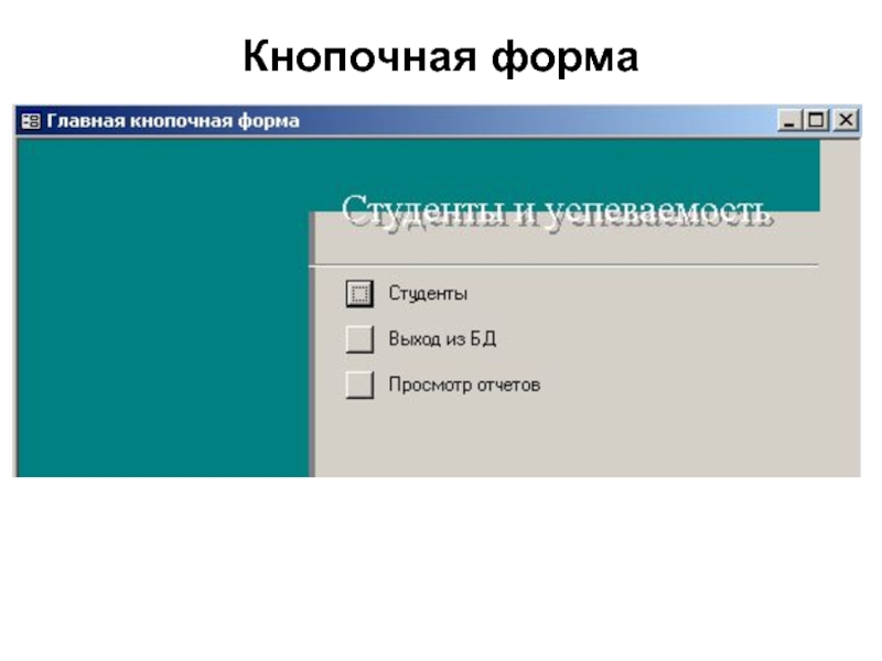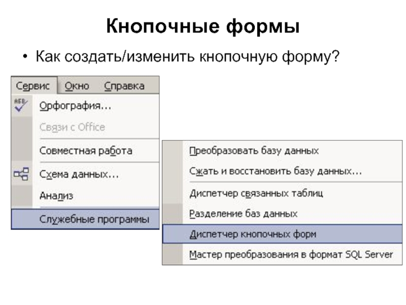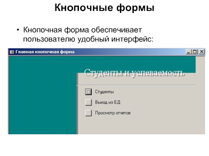 Слайд 20Кнопочные формы