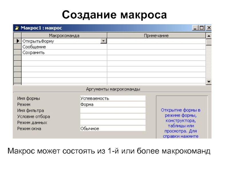 Макрос может состоять из 1-й или более макрокоманд