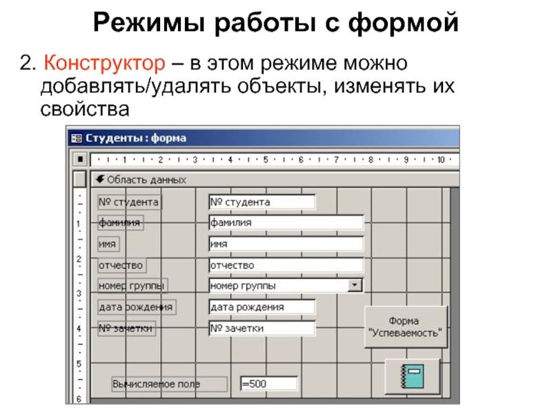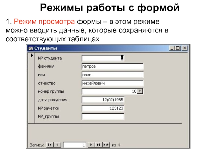Слайд 6Режимы работы с формой