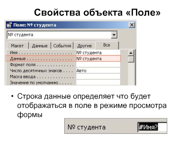 Слайд 10Свойства объекта «Поле»