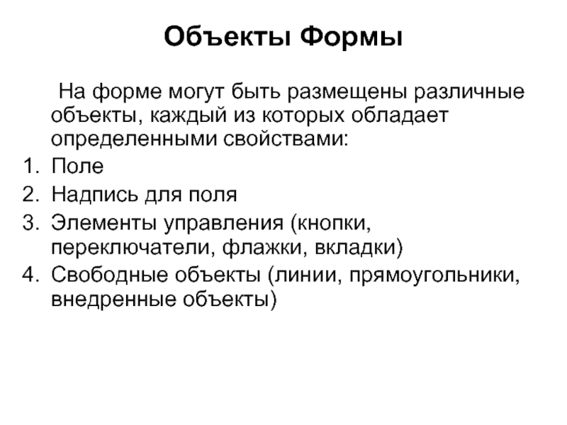 Слайд 8Объекты Формы