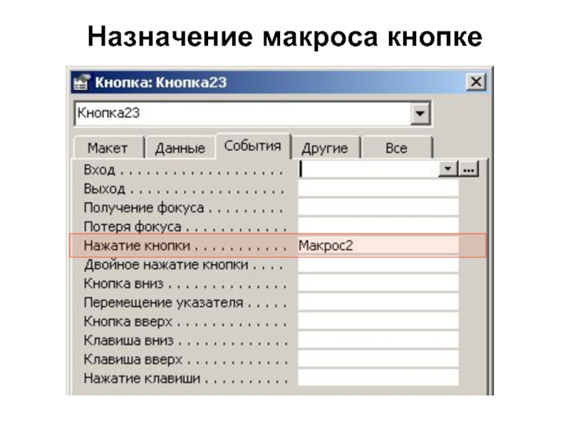 Слайд 17Назначение макроса кнопке