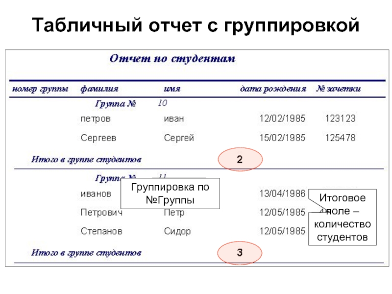 Слайд 31Табличный отчет с группировкой