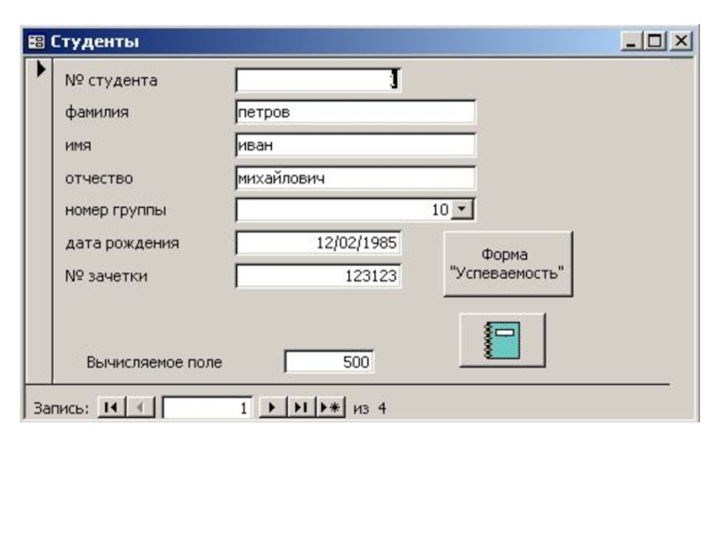 Слайд 51. Режим просмотра формы – в этом режиме можно вводить данные,