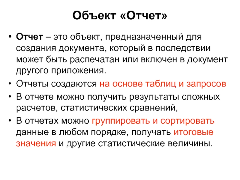 Слайд 28Объект «Отчет»