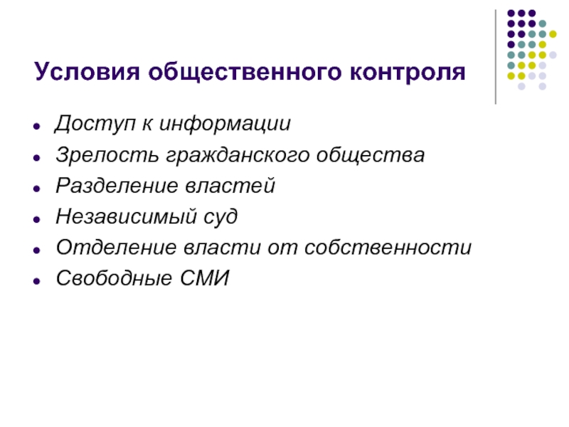 Слайд 9Условия общественного контроля
