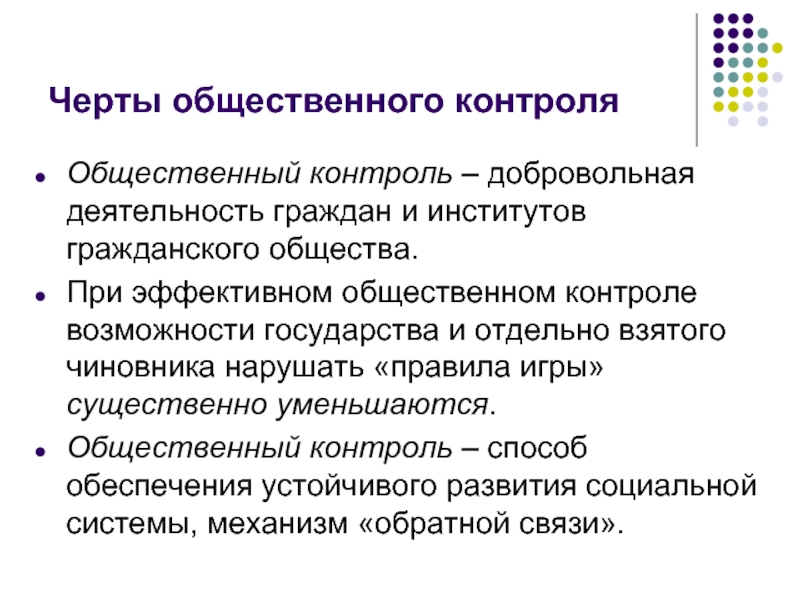 Слайд 7Черты общественного контроля