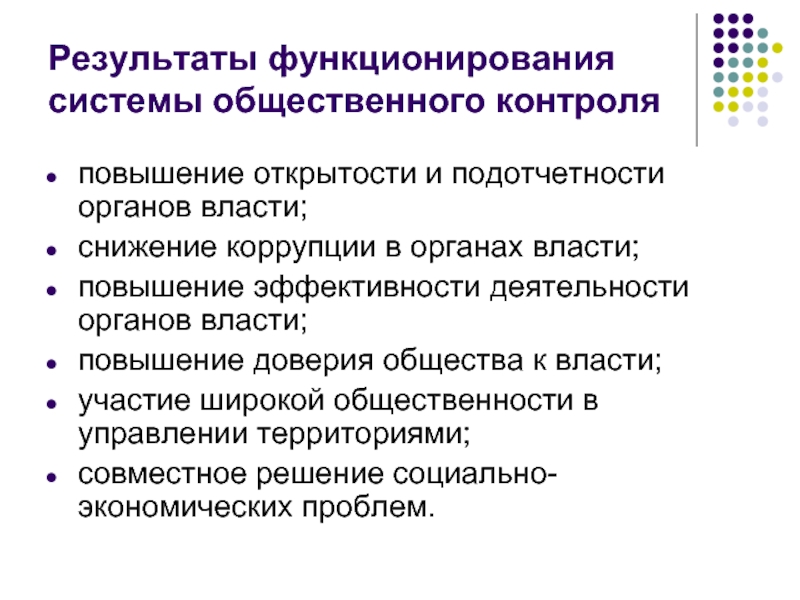 Слайд 17Результаты функционирования системы общественного контроля