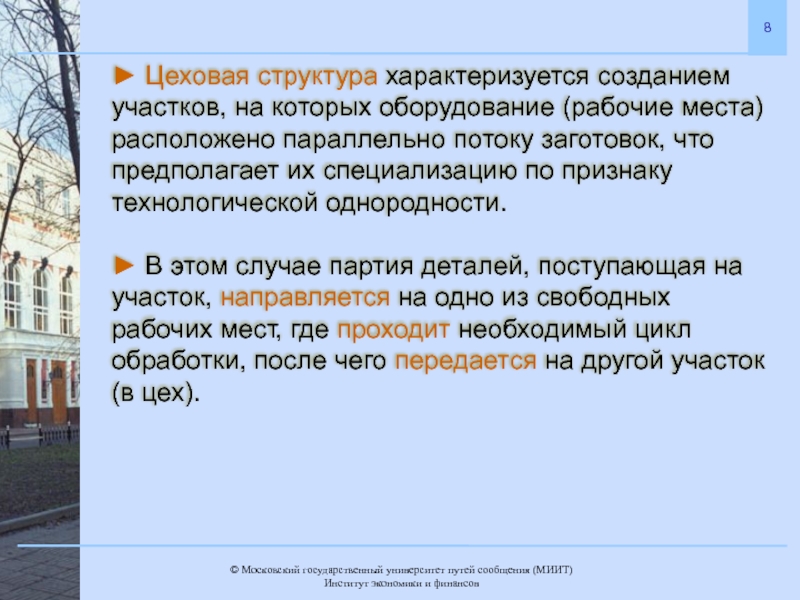 Слайд 8► Цеховая структура характеризуется созданием участков, на которых оборудование (рабочие места)