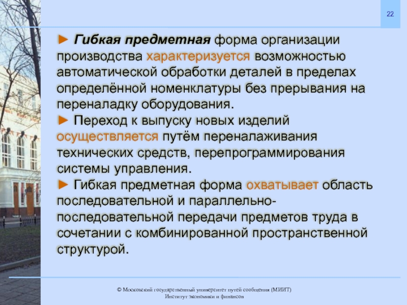 Слайд 22► Гибкая предметная форма организации производства характеризуется возможностью автоматической обработки деталей
