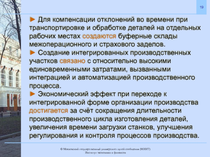 Слайд 19► Для компенсации отклонений во времени при транспортировке и обработке деталей