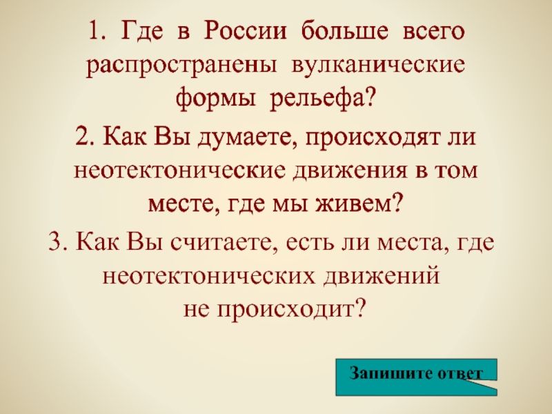 2. Как Вы думаете, происходят ли неотектонические движения в том месте, где мы живем?