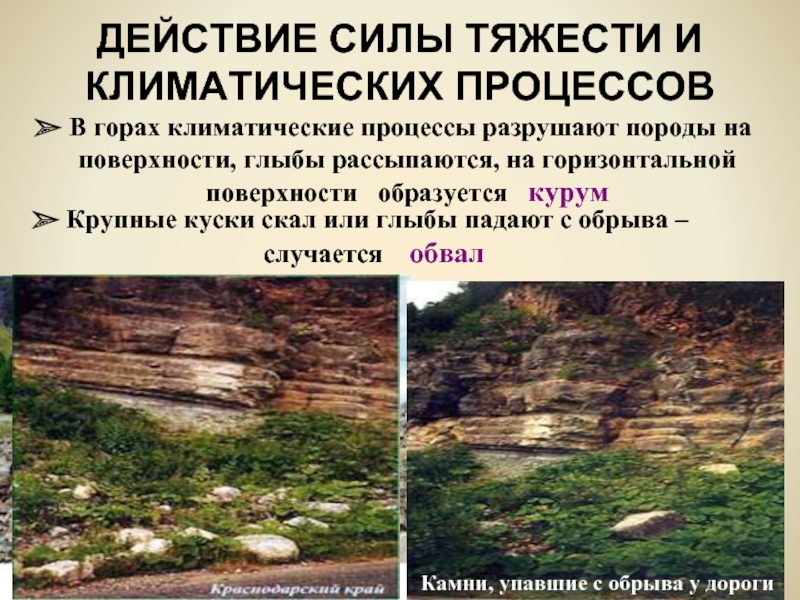 5. Подумайте, какие ещё силы природы кроме климата, могут привести к образованию осыпей и обвалов?