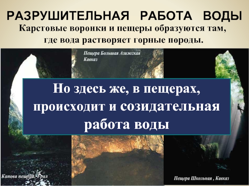 Но здесь же, в пещерах, происходит и созидательная работа воды