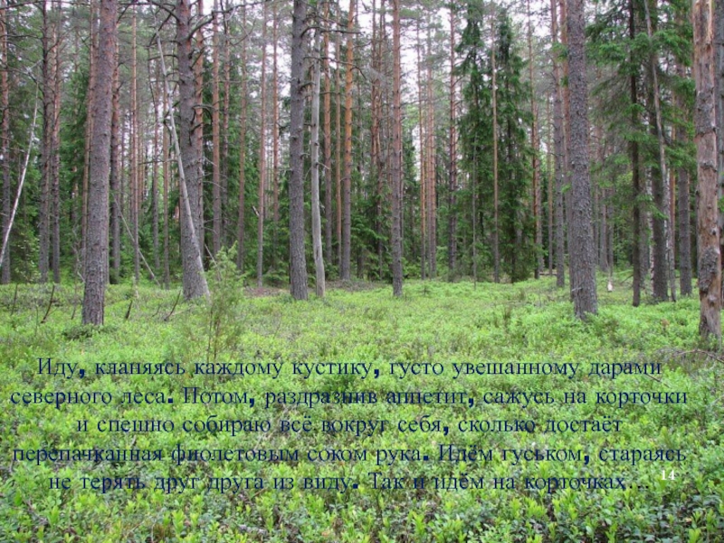 Иду, кланяясь каждому кустику, густо увешанному дарами северного леса. Потом, раздразнив