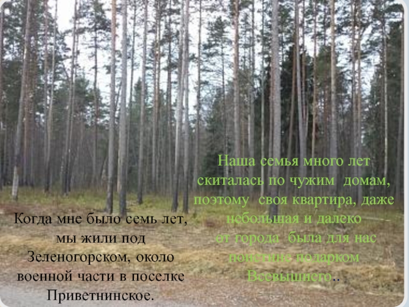 Слайд 2Когда мне было семь лет, мы жили под Зеленогорском, около военной