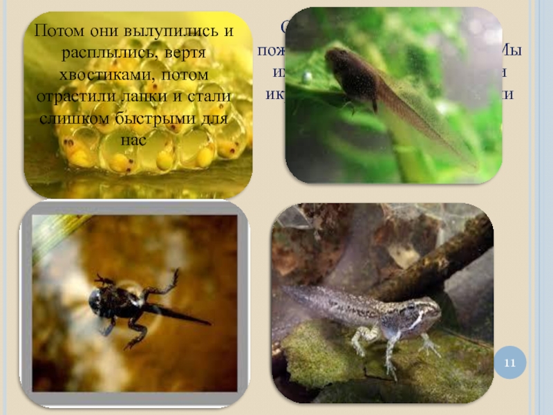 Слайд 11Сперва посмотреть, как там поживают наши головастики. Мы их помним ещё