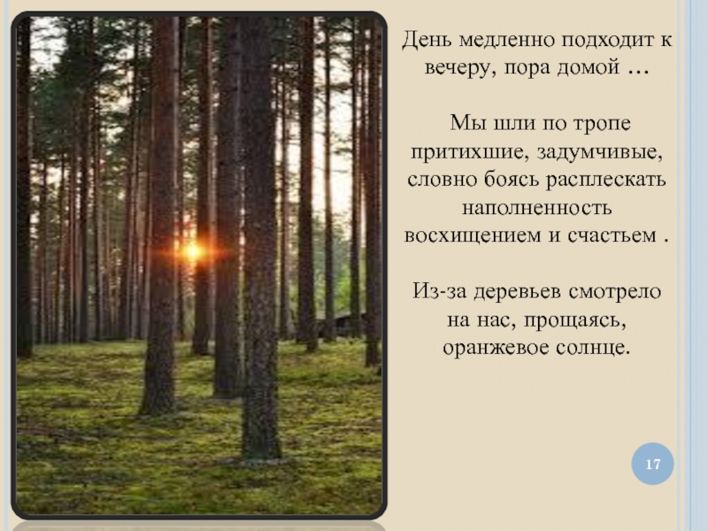 Слайд 17День медленно подходит к вечеру, пора домой …