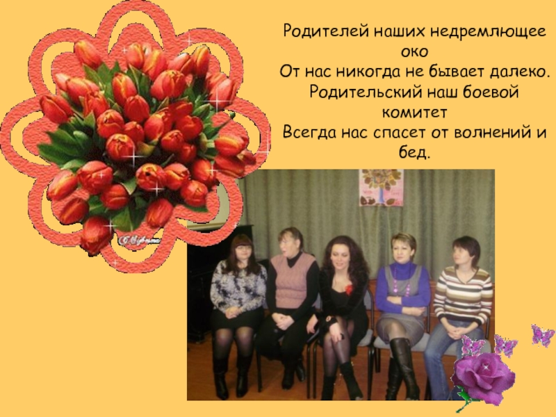 Слайд 12Родителей наших недремлющее око От нас никогда не бывает далеко. Родительский наш боевой
