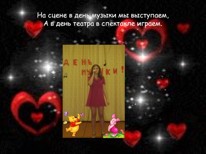 Слайд 8На сцене в день музыки мы выступаем, А в день театра в